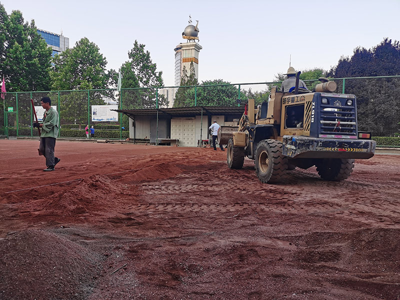 陽泉城市公園紅土網球場施工進行時由華蒙運動場地修建有限公司承接