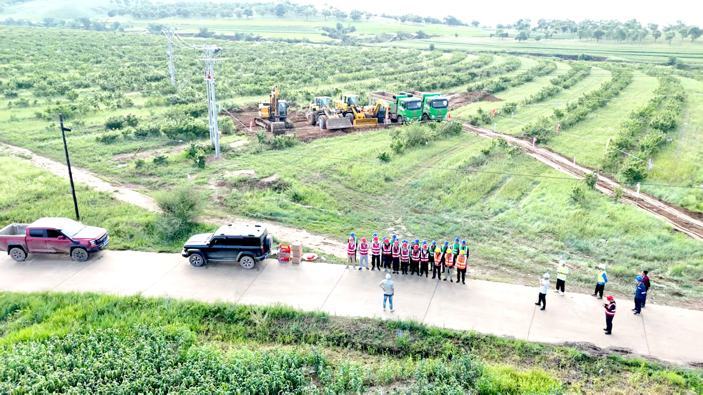 2025年8月5日8時8分,內(nèi)蒙古赤峰市翁牛特旗腹地彩旗招展,機械轟鳴。由赤峰興業(yè)建筑有限公司參建的大唐渾善達克8萬千瓦風電項目二標段220KV升壓站工程正式拉開建設(shè)序幕。項目業(yè)主相關(guān)領(lǐng)導以及監(jiān)理、施工等單位代表齊聚現(xiàn)場,共同見證這一重要時刻。